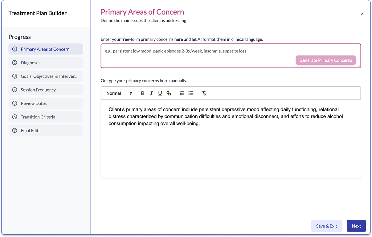 PepperChat provides structured guidance and smart suggestions at every stage, helping you translate progress notes into goals, objectives, and interventions that align with compliance. You can accept, refine, or rewrite anything—your clinical judgment always comes first.